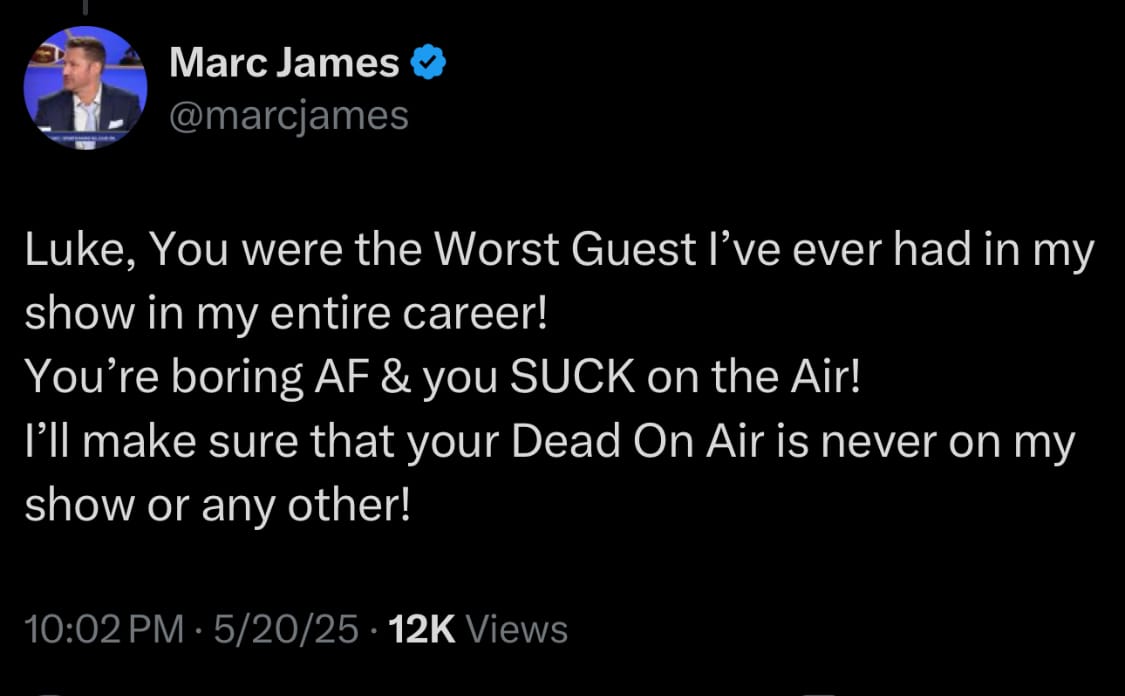 Usually, I do a good job of pretending that I am out of the loop on what happens in Seattle sports radio. In this case, I actually was out of the loop. I didn’t know any of this happened until Wednesday morning when someone who still works in the market sent me a screen shot of James’s Angry Internet Response to Luke.