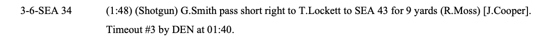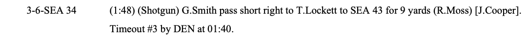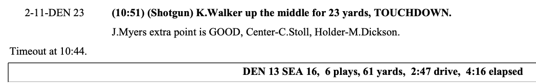 Denver has one timeout remaining, Seattle has two