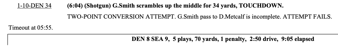 +8.26%, Geno Smith 34-yard scramble for a TD in the 2nd quarter